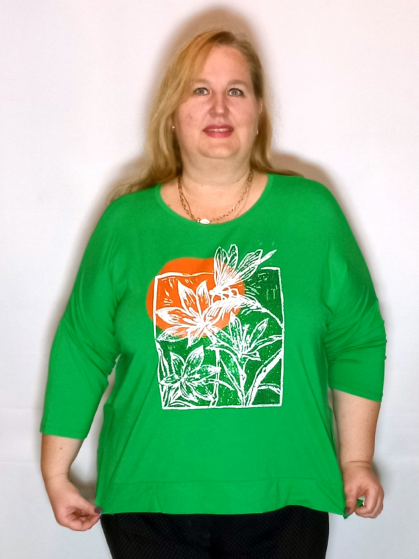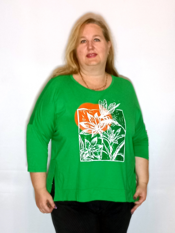 Стильный блузон  выполнен из высококачественного трикотажного полотна с 95% содержанием Вискозы.