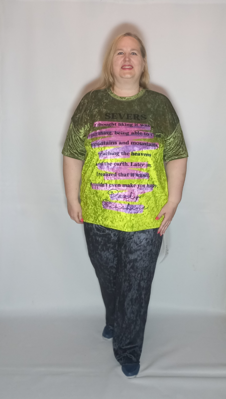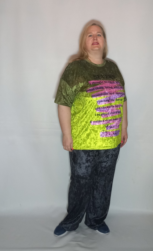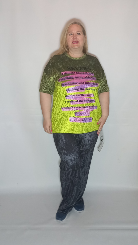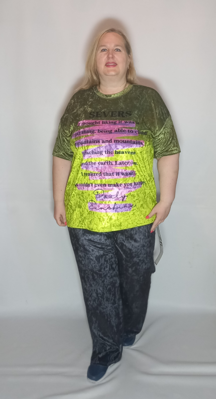 Шикарная  туника- футболка выполнена из мягкого, очень эластичного мраморного велюра с рисунком амбре и  тканным принтом.
