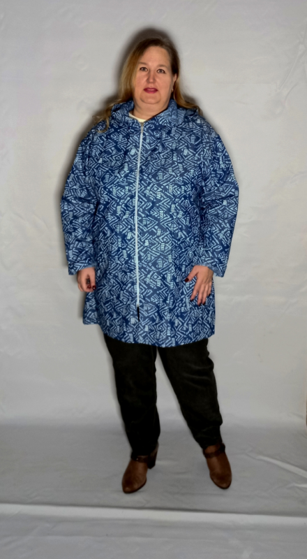 СТильный кардиган, пыльник выполнен из рубашечной джинсы. Принт прорезиненный, гладится без проблем, не облетает, осыпается, немного выступает над поверхностью ткани