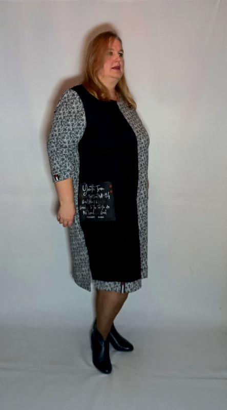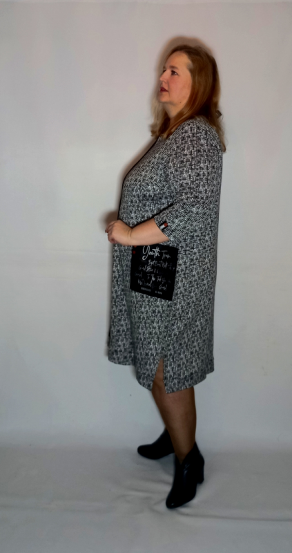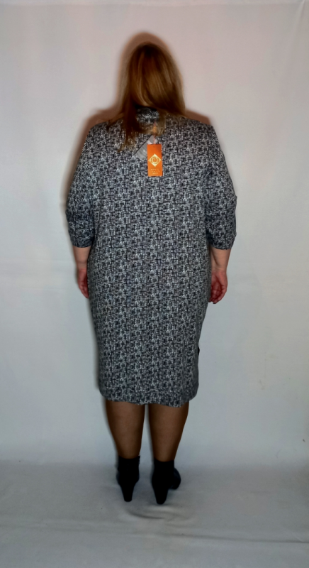 Платье выполнено из плотного трикотажа двух видов : однотонный и с рисунком. Трикотаж приятный, умеренно эластичный