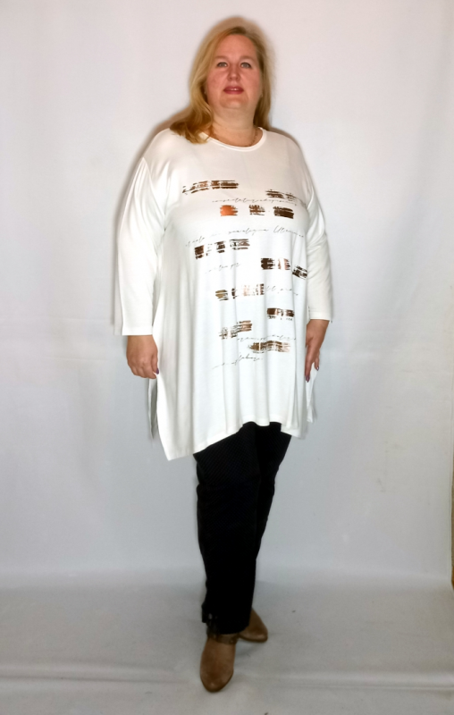 Удлиненная туника А-силуэта выполнена из высококачественного, трикотажного полотна с 95% содержанием вискозы.