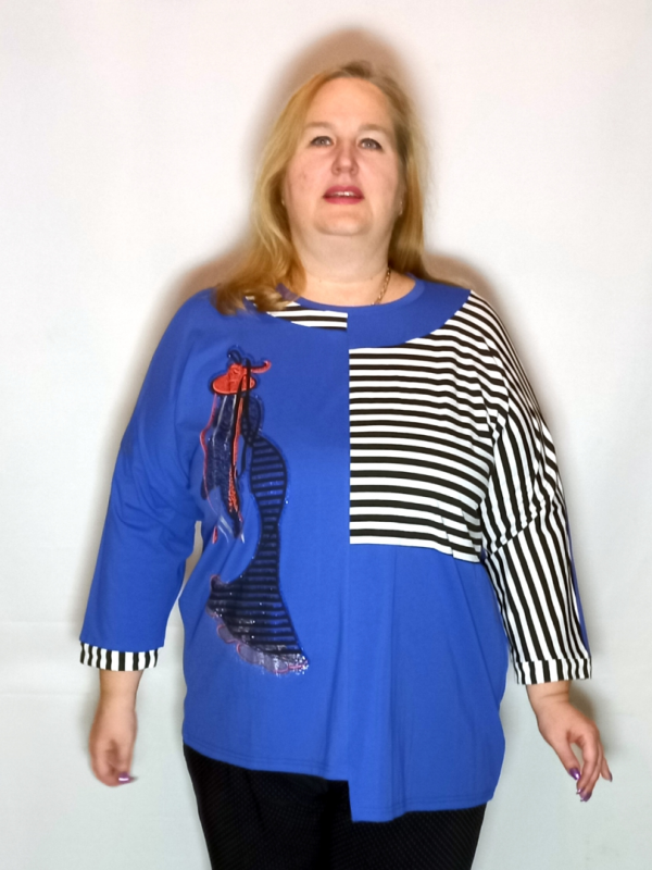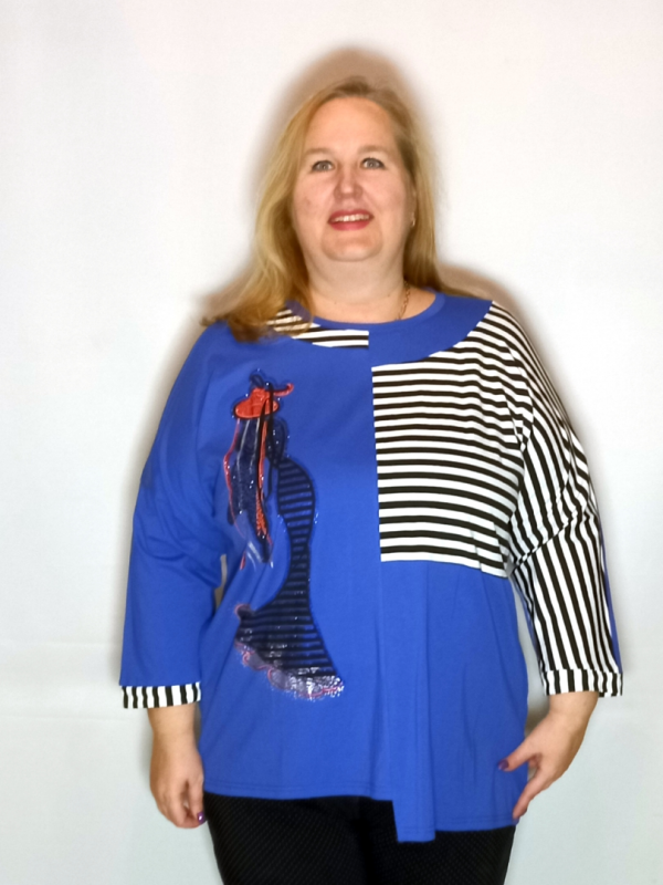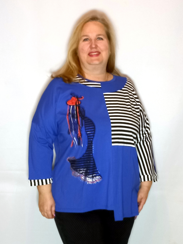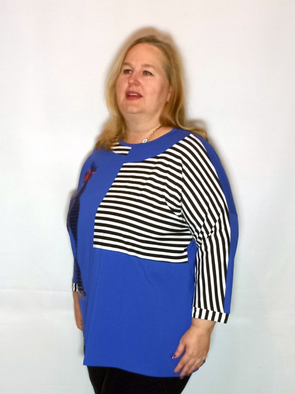 Туника выполнена из сочетания трикотаж однотонного  и с рисунком.