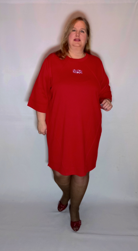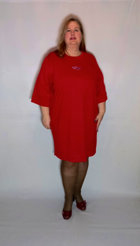 Лаконичное, но элегантное платье туника выполнено из плотного трикотажа. Трикотаж очень приятный  наощупь, плотненький, хорошо скрывает шероховатости фигуры, эластичный.