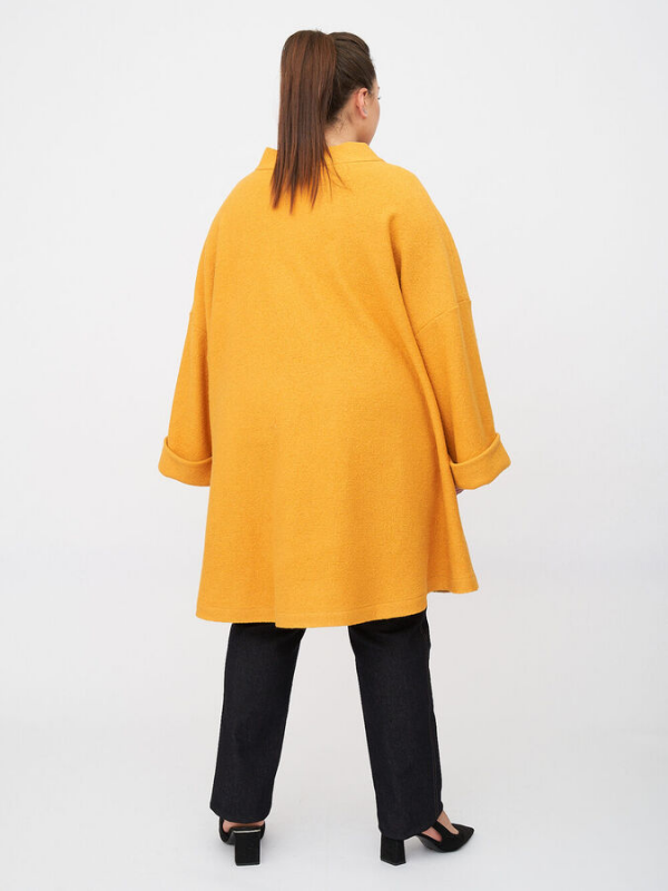 Облегченное пальто силуэта трапеция будет непременно приковывать к вам взгляды прохожих. Пальто создано из вареной шерсти, отлично подойдет для весны и ранней осени. Важно отметить, что в данной модели нет подклада и утеплителя.